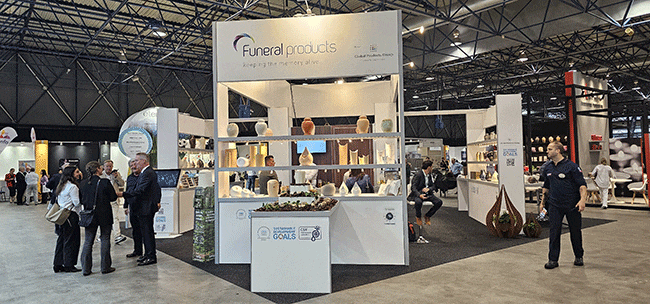 Funeral Products no ha querido perderse una vez más su cita con Funermostra, donde en su amplio y elegante stand dio a conocer a los profesionales asistentes su extenso catálogo de productos, en el que prima la innovación, la personalización y la sostenibilidad.